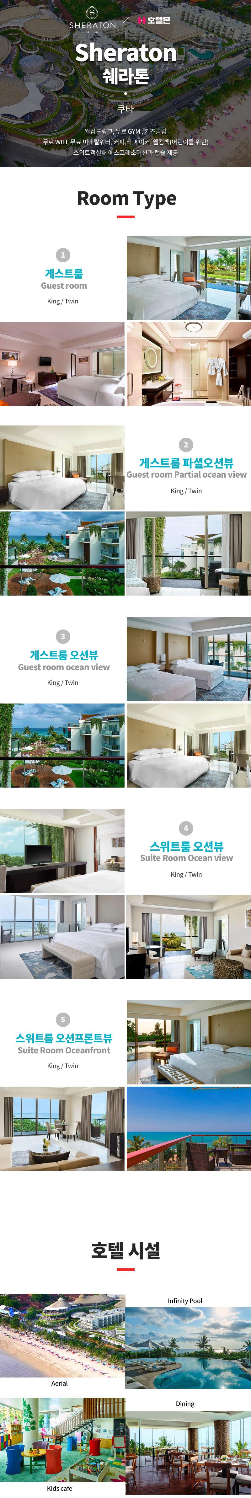 서비스 : 24시간 룸서비스, 24시간 프런트 데스크, 스파/사우나, 실외 수영장, 피트니스 센터, 바(bar), 레스토랑, 풀 사이드 바, 키즈클럽, 무료 Wi-Fi(모든 객실)