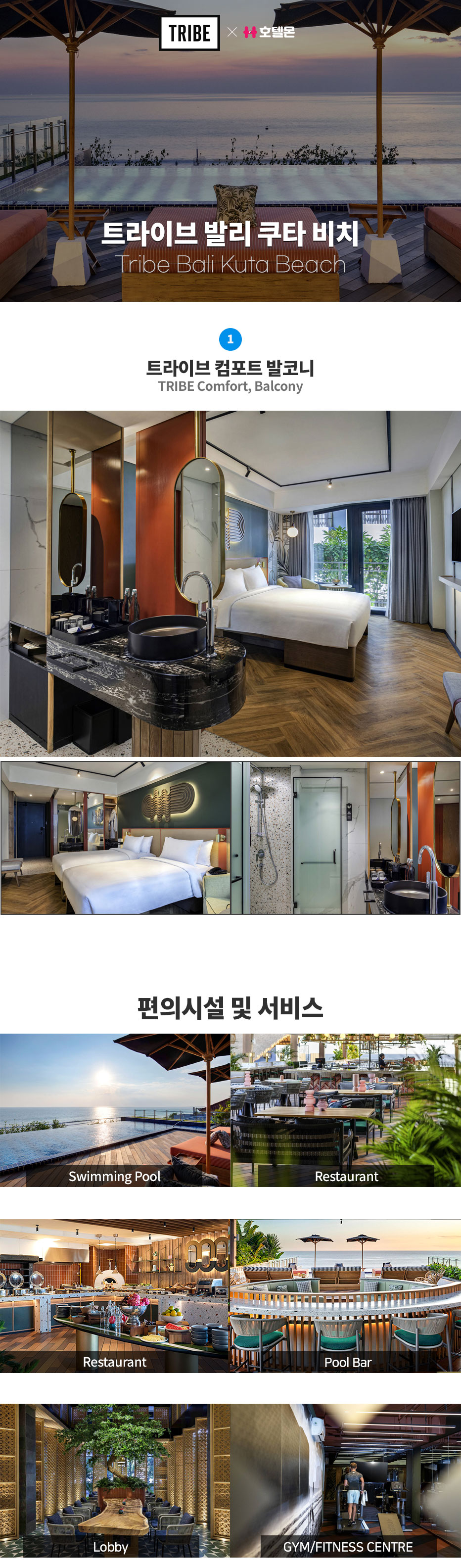 노을 명소인 쿠타 비치 바로 건너편에 위치하고 있으며, 응우라이 국제공항에서 차로 20분 거리에 위치한 Tribe 발리 쿠타 비치는 도시 럭셔리를 대표하는 165개의 객실과 스위트룸을 갖추고 있어 모두를 위한 세련된 현대적인 호텔입니다. 사회적이고 역동적인 분위기의 여행 경험을 선사하는 이곳은 Rooftop 레스토랑과 수영장에서 바라본 쿠타 비치의 환상적인 전망을 즐기실 수 있습니다.